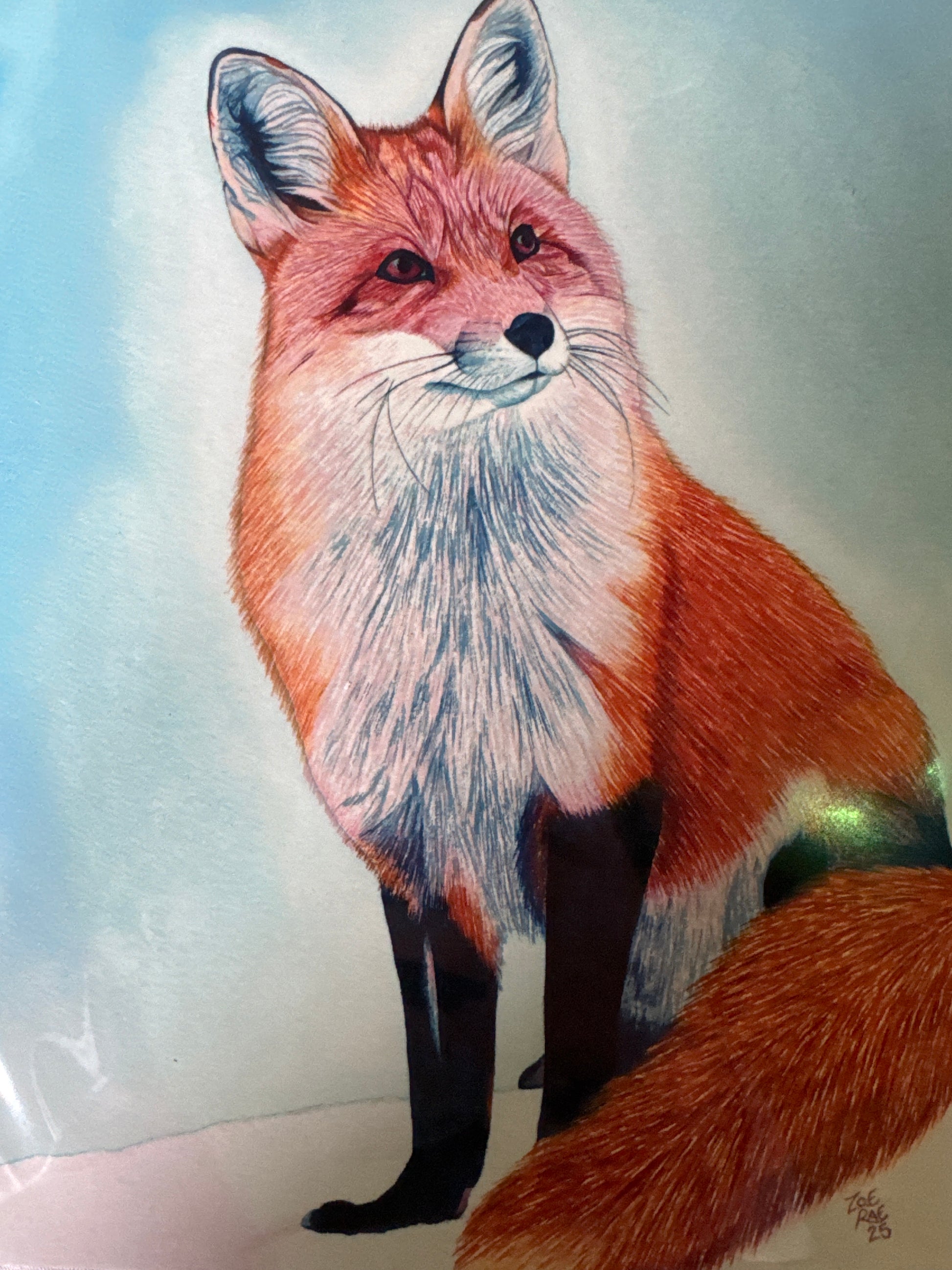 Last summer when hiking to Maroon Bells a fox followed my friends and I along the trail. After the experience we all said we should get fox tattoos together. I might still get one but to remember that experience I decided to paint the fox for now.
